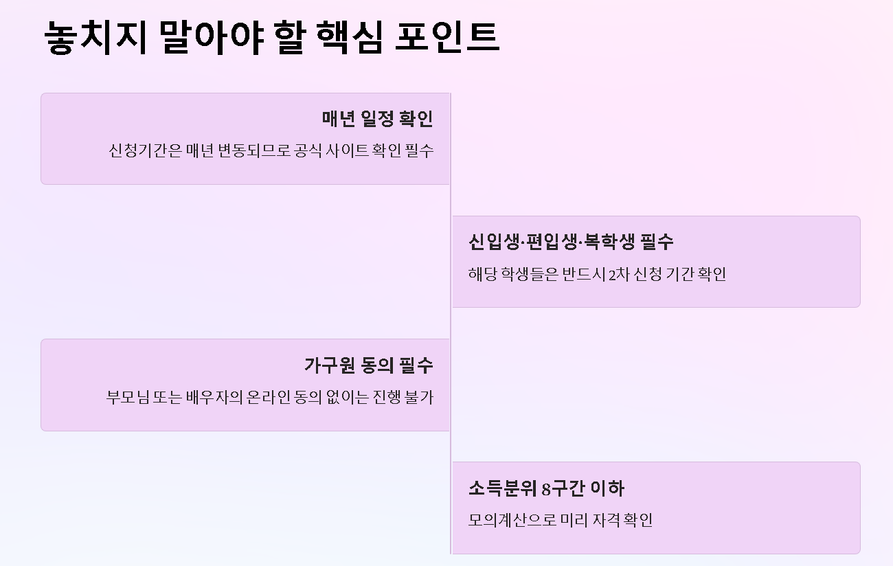 이 정보를 참고하면 국가장학금 2차 신청을 놓치지 않고 정확하게 준비하는 데 큰 도움이 됩니다.